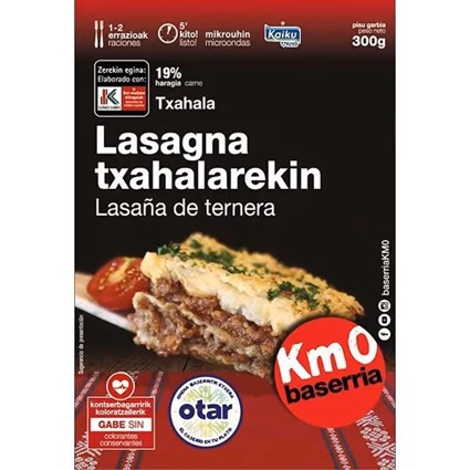 Láminas de pasta wanton + carne de vacuno Euskolabel + tomate “Euskal Baserri” + salsa bechamel + queso D.O. Idiazábal. Capas equilibradas, gratinado suave y estructura compacta.